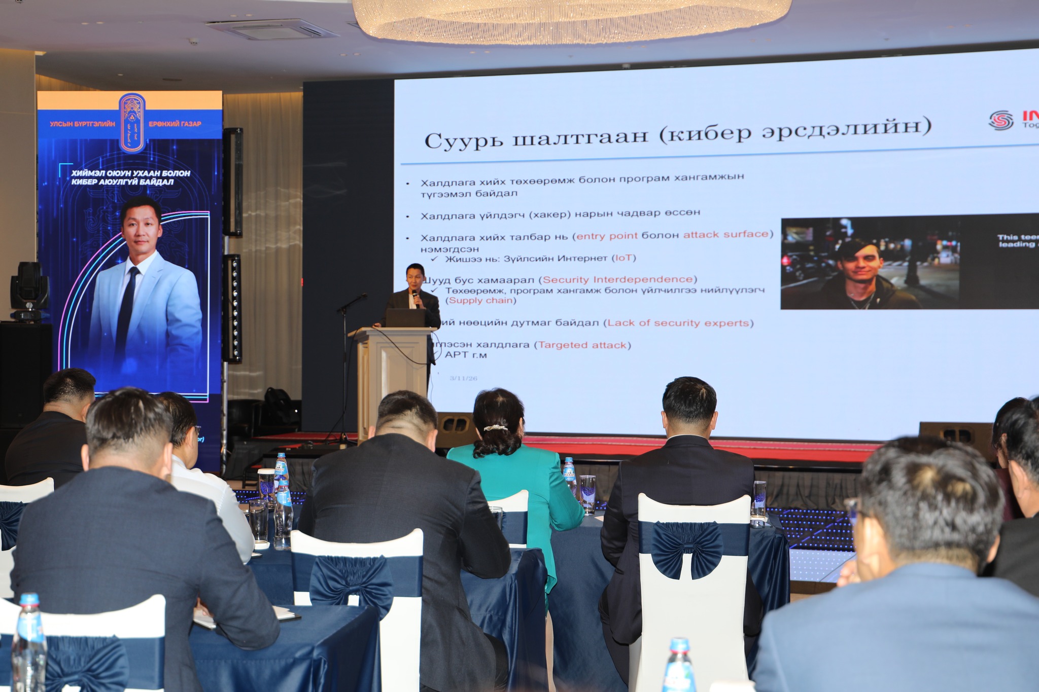The first presentation was given by Dr. M. Tserenbat, member of the Ethics Committee, followed by presentations from researcher and Doctor of Law N. Altansukh; State Prize Laureate of Mongolia, Honored Scientist, Academician, Doctor of Legal Sciences (Sc.D), and Professor S. Narangerel; Mr. U. Ganbayar, CEO of “Info Sec Plus” LLC; Mr. Kh. Enkhmanlai, Head of the E-Governance Department of the “E-Mongolia” Academy; Mr. G. Ireedui, Advisor to the Speaker of Parliament on Big Data, Artificial Intelligence, and Youth Policy; Mr. B. Manduul, Director of “Ondo” LLC; Dr. (Ph.D) and Associate Professor B. Uuganbayar of the Department of Mathematics at the Mongolian University of Science and Technology; Senior Officer and Senior Commissioner D. Tsend-Ayuush from the Prevention and Public Awareness Department of the Independent Authority Against Corruption; Dr. (Ph.D) and Associate Professor D. Erdenebayar, Director of the National Institute for Regional Development; and Mr. E. Baldansambuu, Senior Specialist of the Cyber Security Council Secretariat, all of whom delivered insightful presentations.